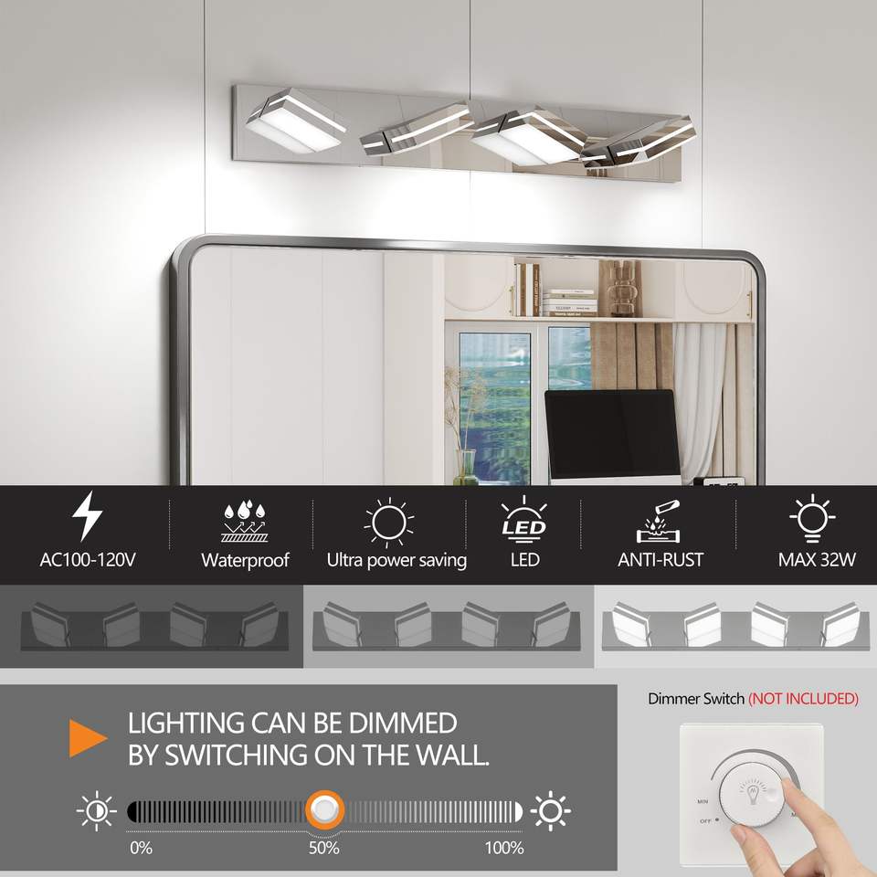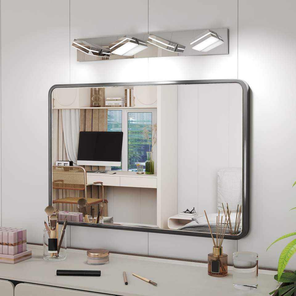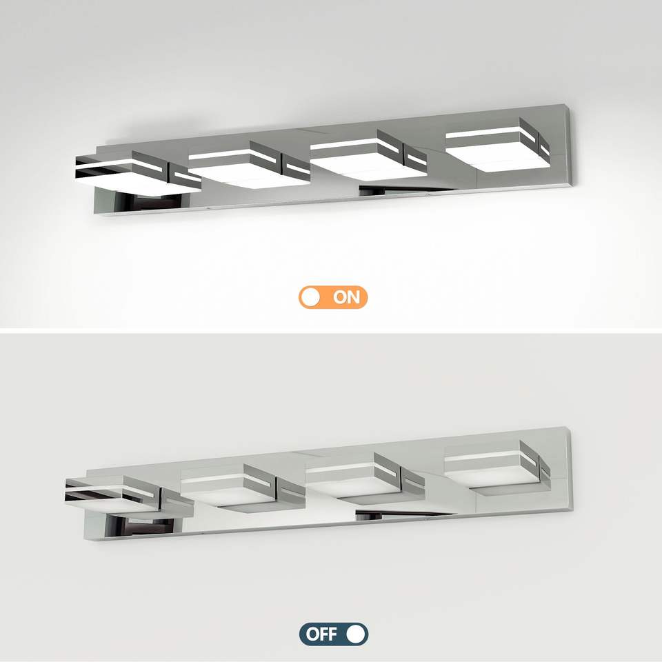 Lámpara de Vanidad LED Moderna Cromada, 4 Luces, Aplique de Pared, Diseño Elegante y Minimalista, Eficiente Energéticamente, para Espejo de Baño, Fácil de Instalar