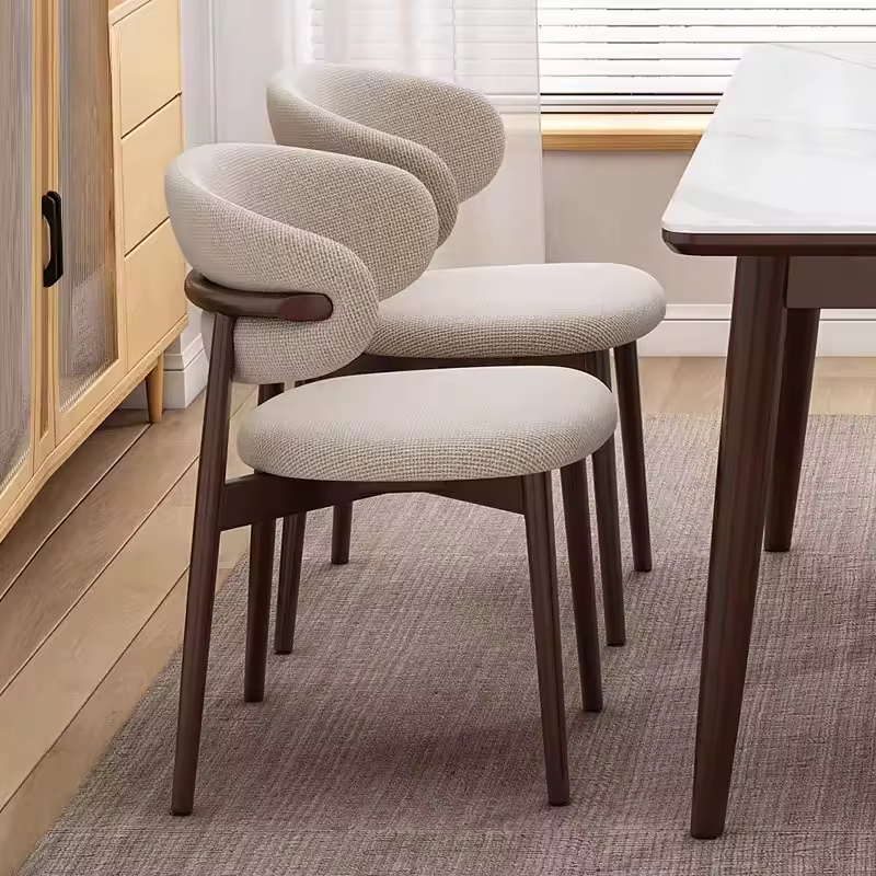 Silla de Comedor Moderna con Respaldo Circular de Cuero, Adecuada para Familias, Hoteles y Cocinas, con Cojines Suaves