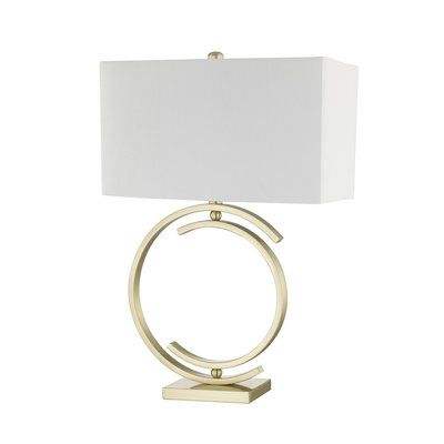 Lámpara de Mesa Circular Moderna de Metal con Pantalla de Tela, Lámpara Decorativa de Noche para Dormitorio, Sala de Estar, Oficina y Estudio