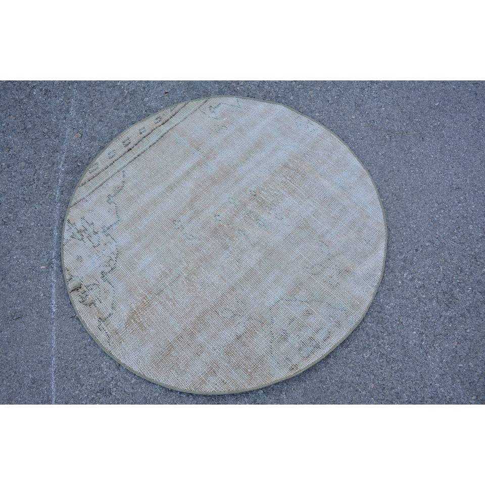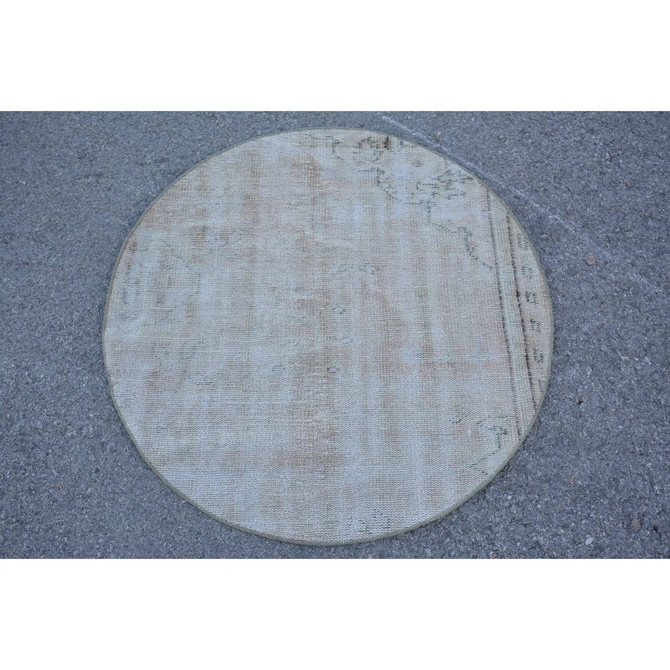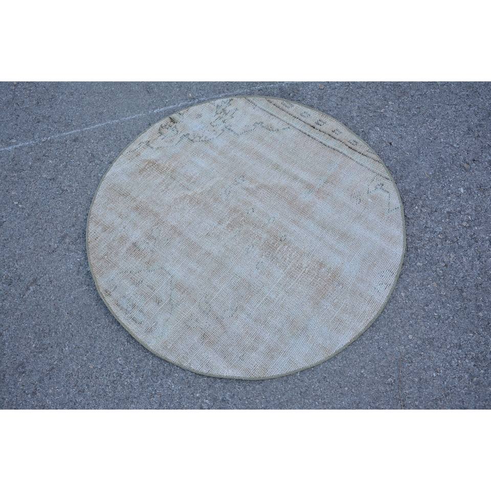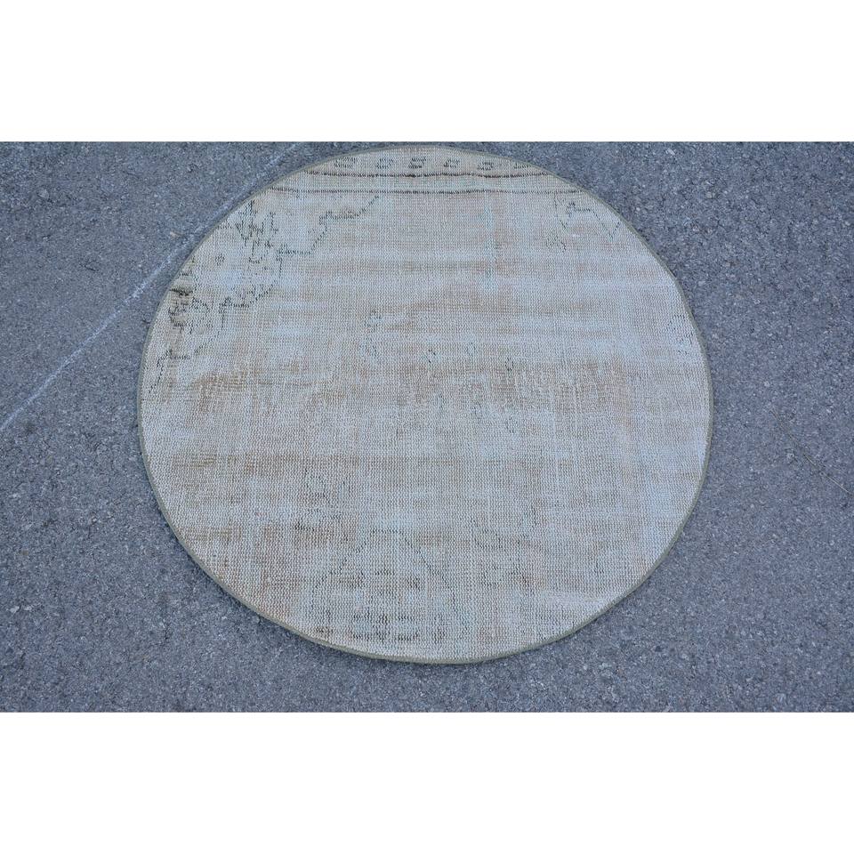 Alfombra de lana Beige clásica moderna de 3,3x3,3 pies hecha a mano diseño turco Vintage patrón de retazos respaldo de látex estilo de piel de conejo sintética