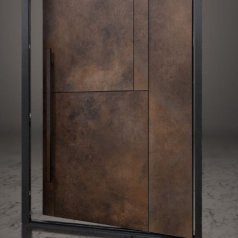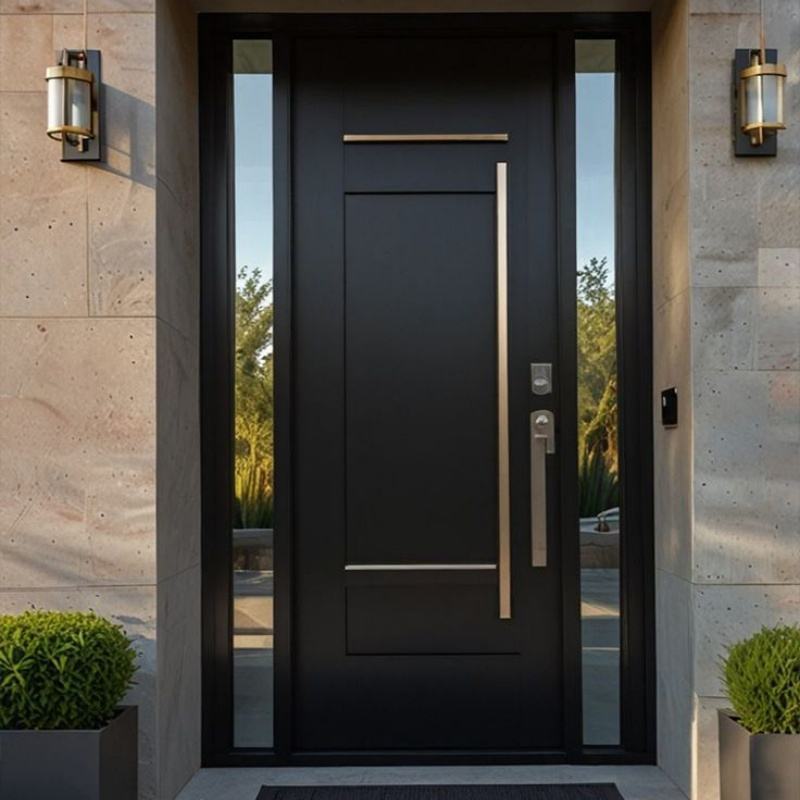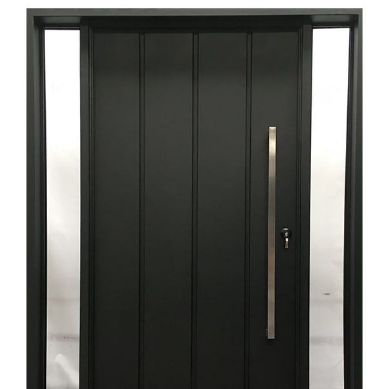 Entrada frontal metálica personalizada de diseño clásico moderno con ventanas de vidrio Puerta exterior de entrada principal de una sola hoja doble