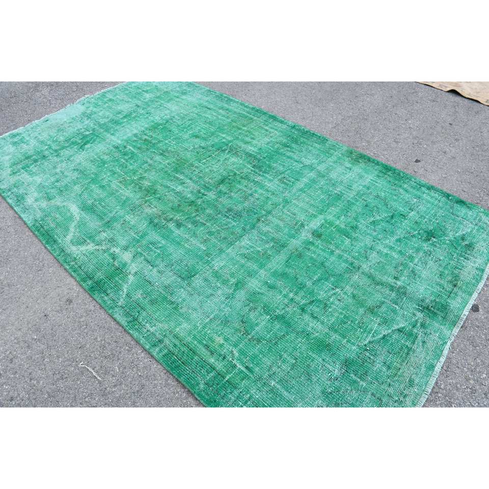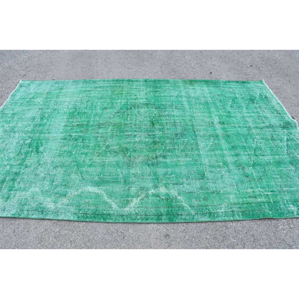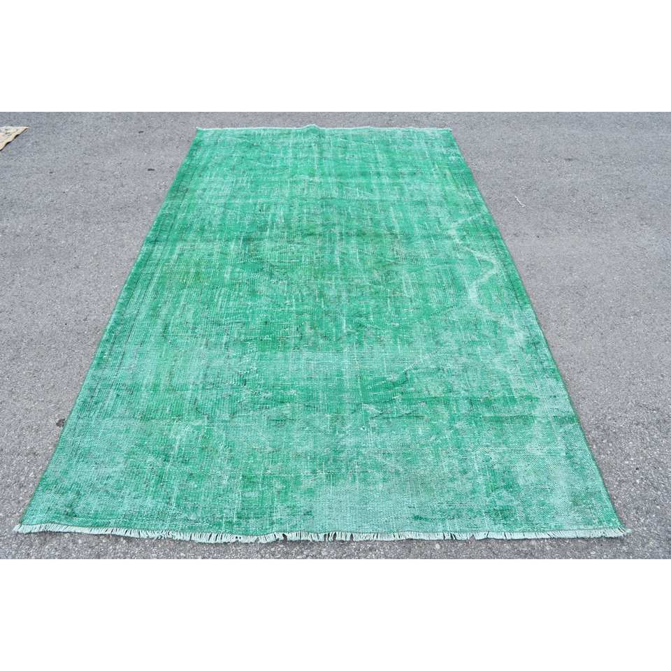 Alfombra turca clásica moderna de área grande, lana verde de 5,2x8,8 pies con patrón abstracto, estilo rectangular, diseño de Tabriz con respaldo de látex