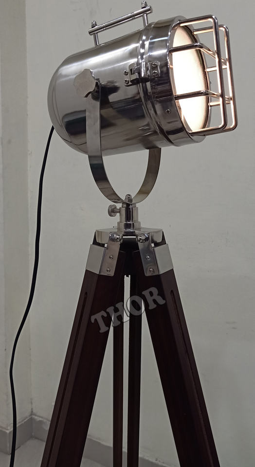 Foco náutico clásico moderno Soporte de trípode de madera marrón Diseñador LED Cob Empotrado Acabado en níquel Luz decorativa para el hogar y la Oficina
