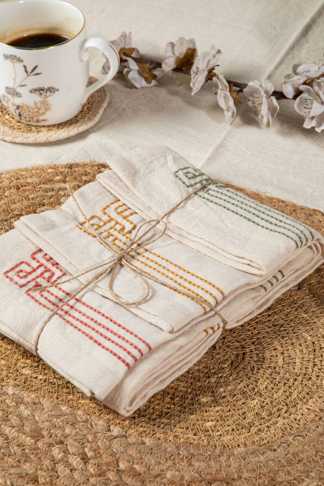 Servilleta de Mesa Cuadrada clásica moderna algodón lavado llamativo bordado de tres tonos textura táctil decoración del hogar-venta al por mayor cuadrada
