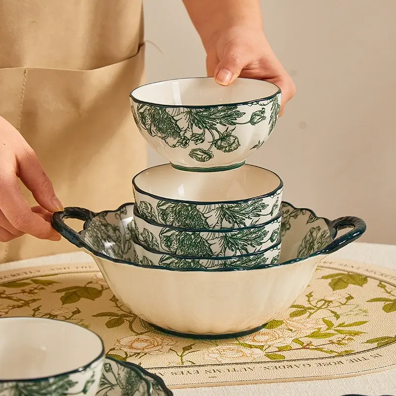 Juego de Vajilla de Cerámica Moderna Clásica con Acabado Crema, Ligera, para Frutas, Uso Doméstico, Fiestas y Restaurantes, Nuevo