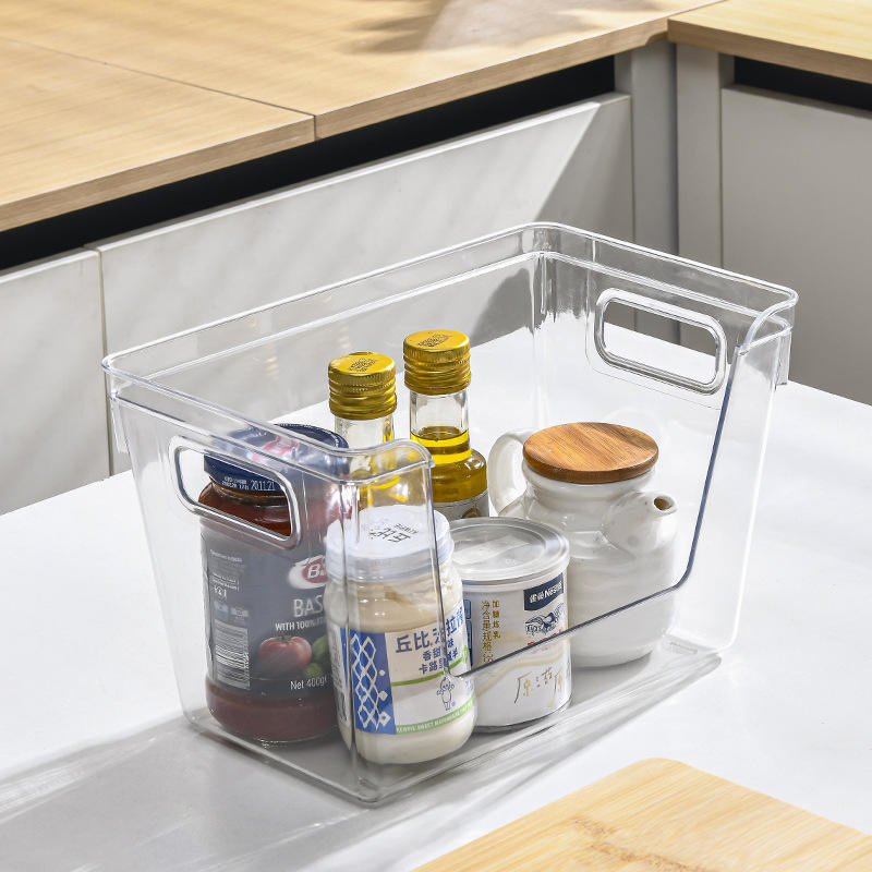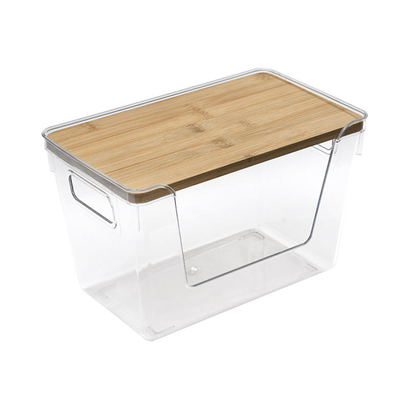 Caja de Almacenamiento Transparente Moderna de PET con Tapas de Bambú, Cuadrada, Apilable, para Organización de Cocina, Despensa y Alimentos
