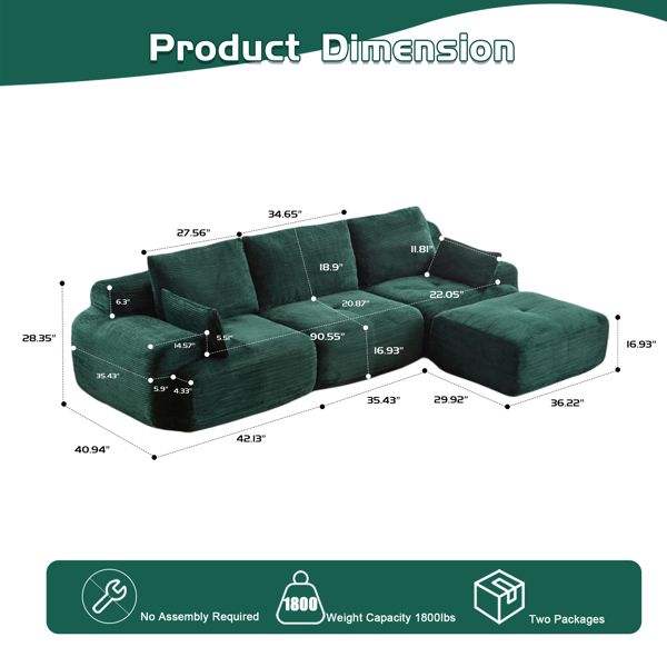 Sofá Seccional Modular Moderno Cloud, Sofá Grande de Espuma Viscoelástica Comprimida para Sala de Estar, Tela de Pana Resistente a Mascotas