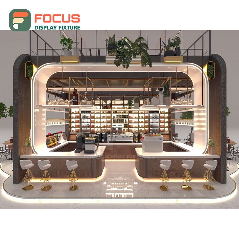 Exhibidor Moderno para Productos de Café con Frente de Vidrio Templado, Área de Exhibición de Accesorios, Exhibidor para Cafetería