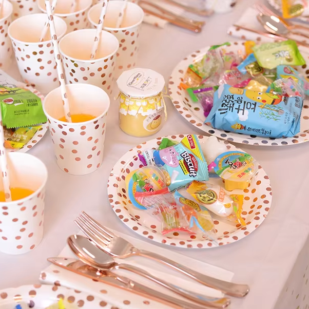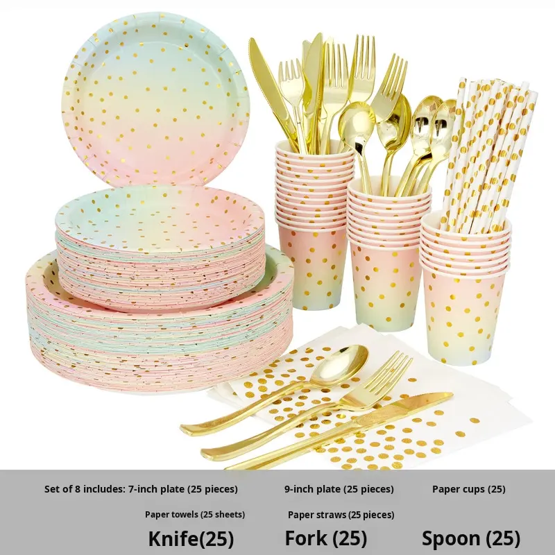 Juego de Vajilla Desechable Moderno y Colorido, Platos de Papel, Vasos, Cuchara, Tenedor, Cuchillo, Juego de Cubiertos para Fiestas y Bodas