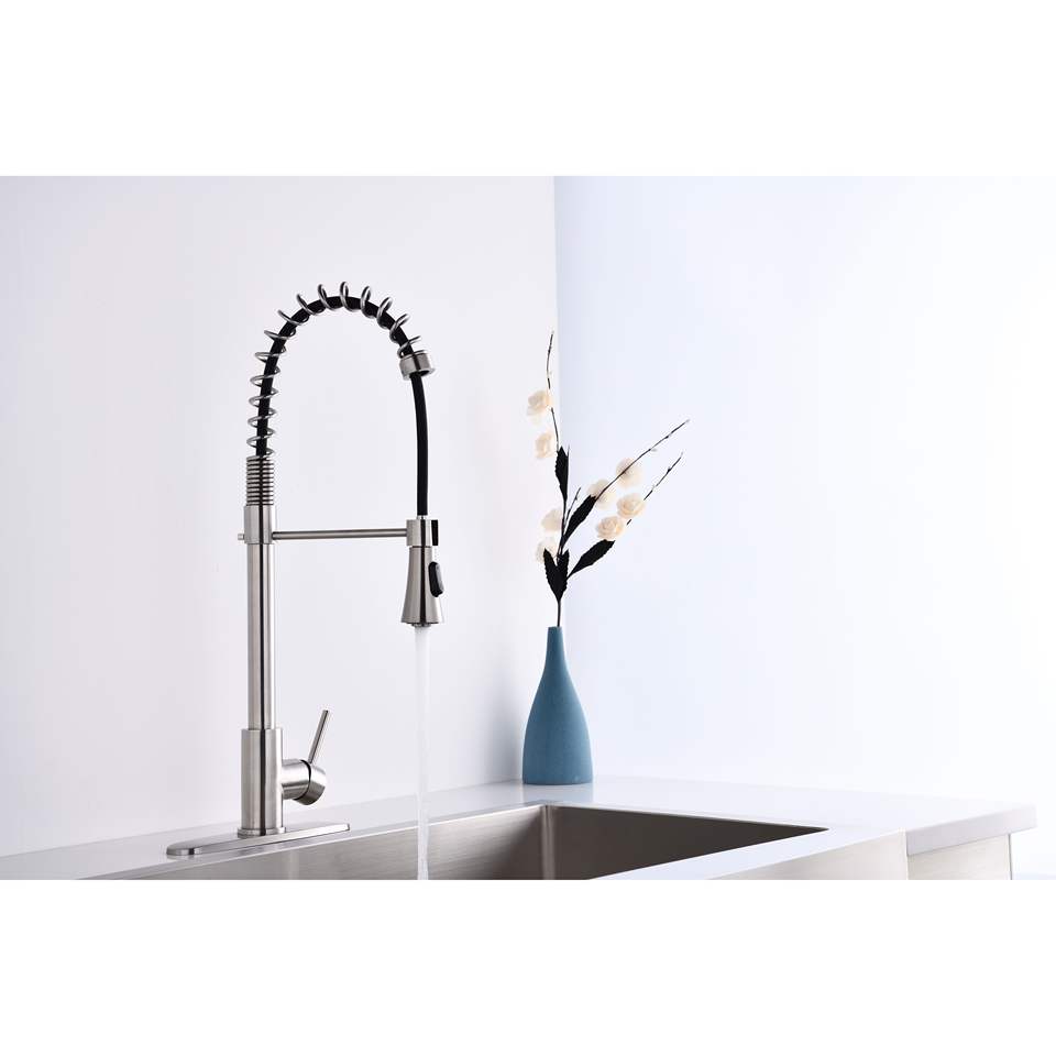 Grifo de cocina DB de un solo mango comercial moderno con diseño de resorte de arco alto para Cocinas Modernas