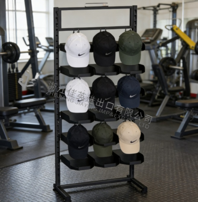 Soporte de estante de exhibición de tienda comercial moderna, casco de sol, béisbol, vaquero, camionero, sombrero Dandy, cubo, deporte, Golf, recubierto de polvo de Metal