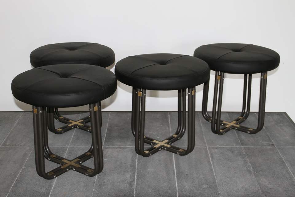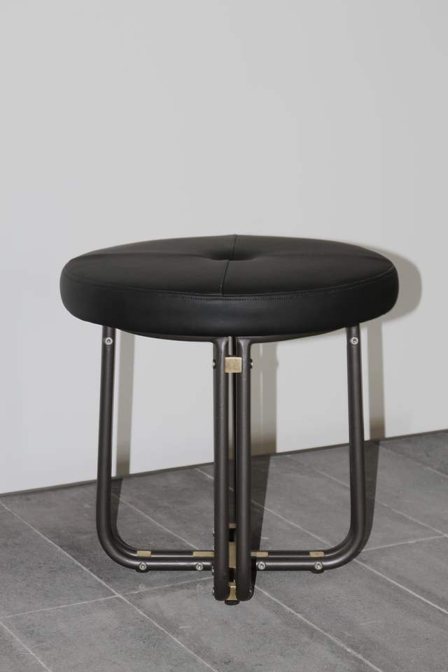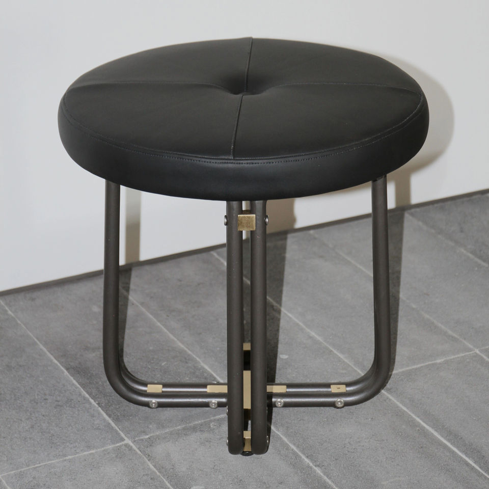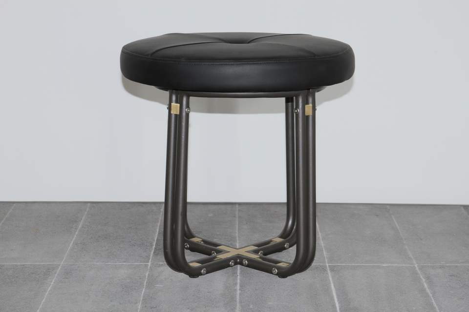 Taburete Moderno Compacto de Acero Inoxidable con Tapicería de Cuero, Acabado Duradero, Diseño Minimalista para Dormitorio y Apartamento