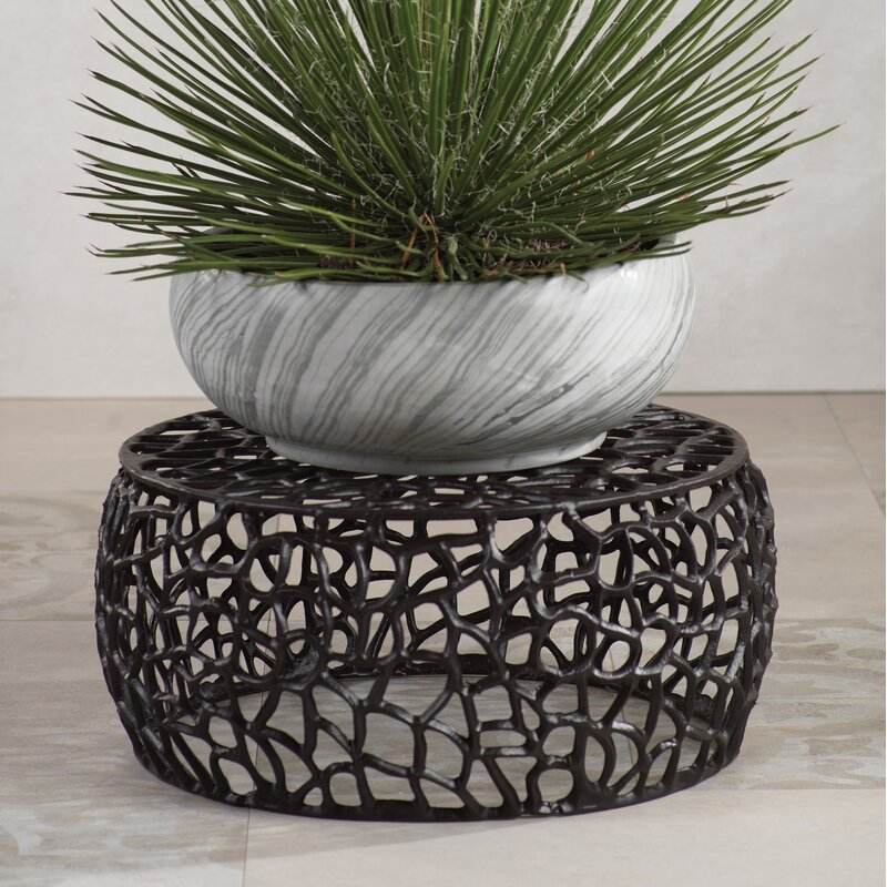 Mesa auxiliar de malla redonda de aluminio convertible moderna, mesa de centro decorativa para cama y sala de estar negra, Material de Metal duradero