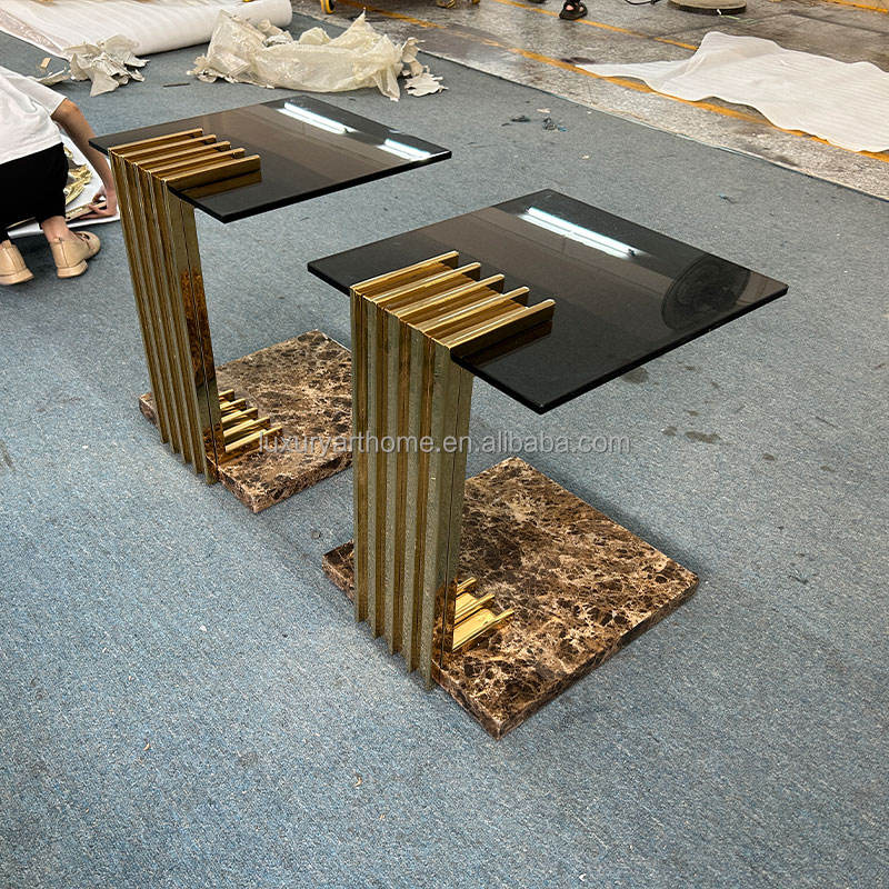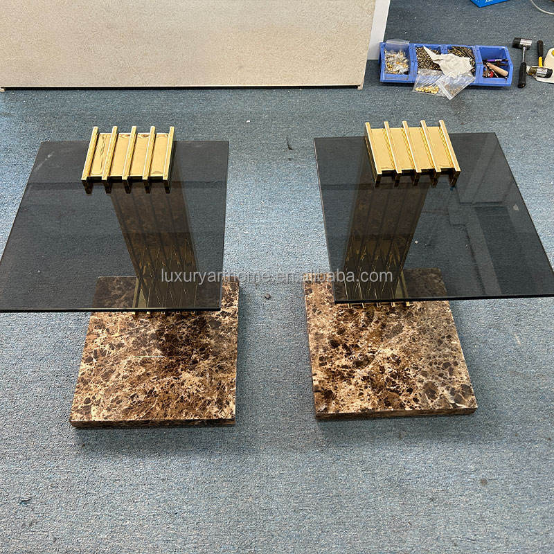 Mesa de Centro Moderna Convertible de Mármol con Forma Irregular y Base de Acero Inoxidable para Muebles de Sala