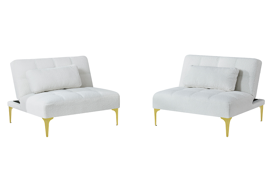 Sofá Cama Convertible Moderno, Reclinable y Plegable, con Patas de Metal Dorado, Tapizado en Tela (Blanco)
