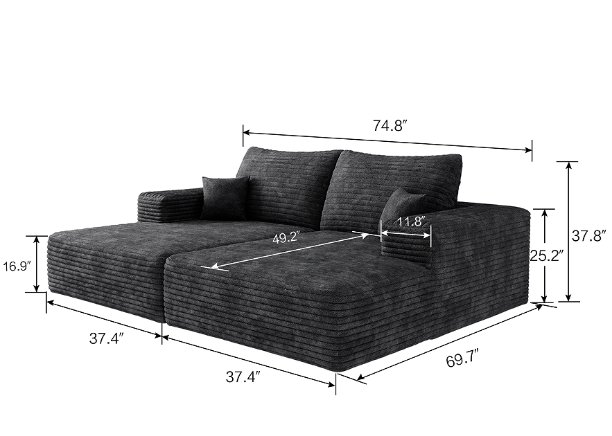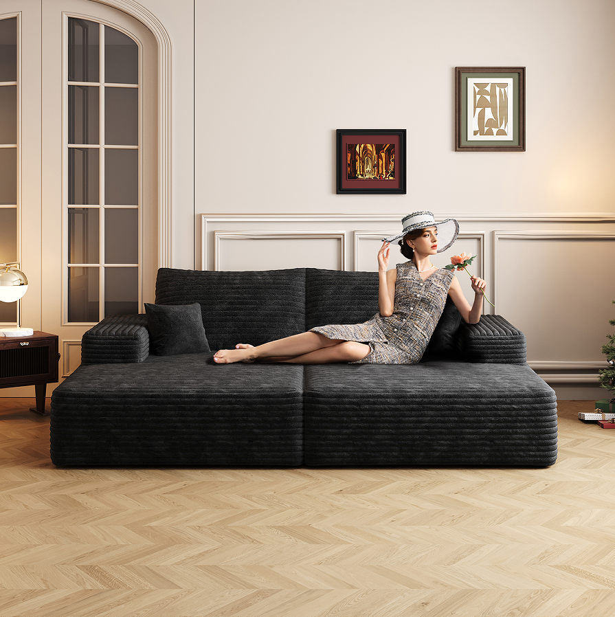 Sofá Cama Cuadrado Convertible Moderno con Doble Cama y Chaise Longue para Apartamento/Hotel/Villa, No Requiere Montaje
