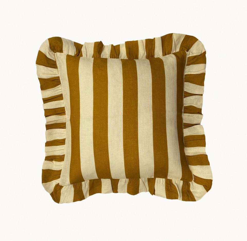 Fundas de almohada con brida de volantes a rayas de algodón moderno, almohada decorativa con volantes, almohada de diseñador bohemio de ITHL