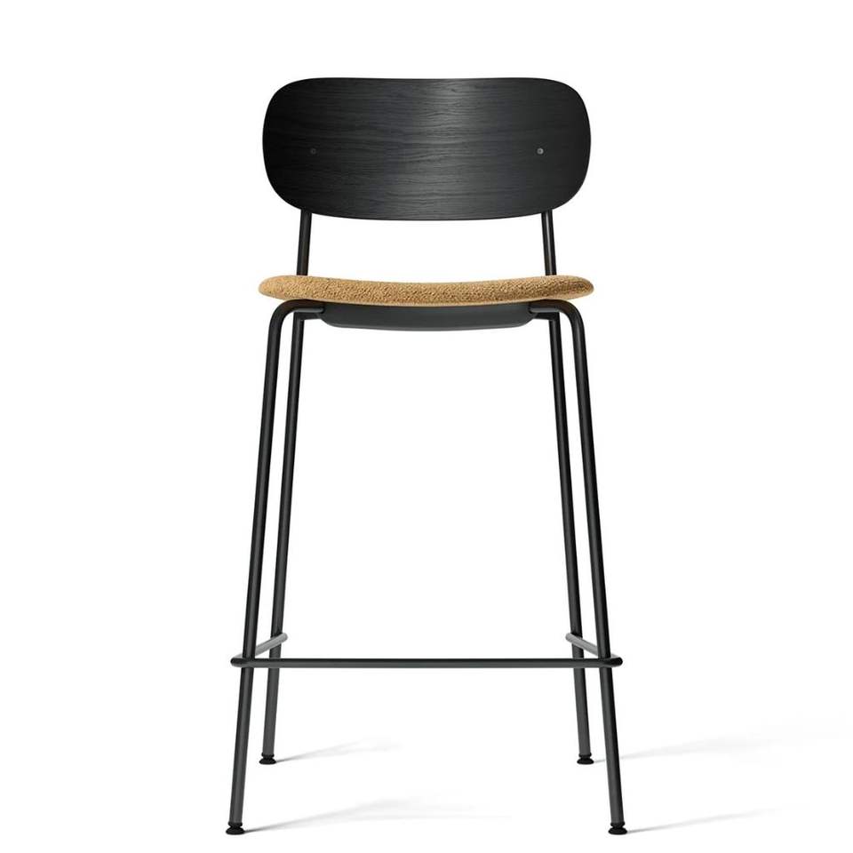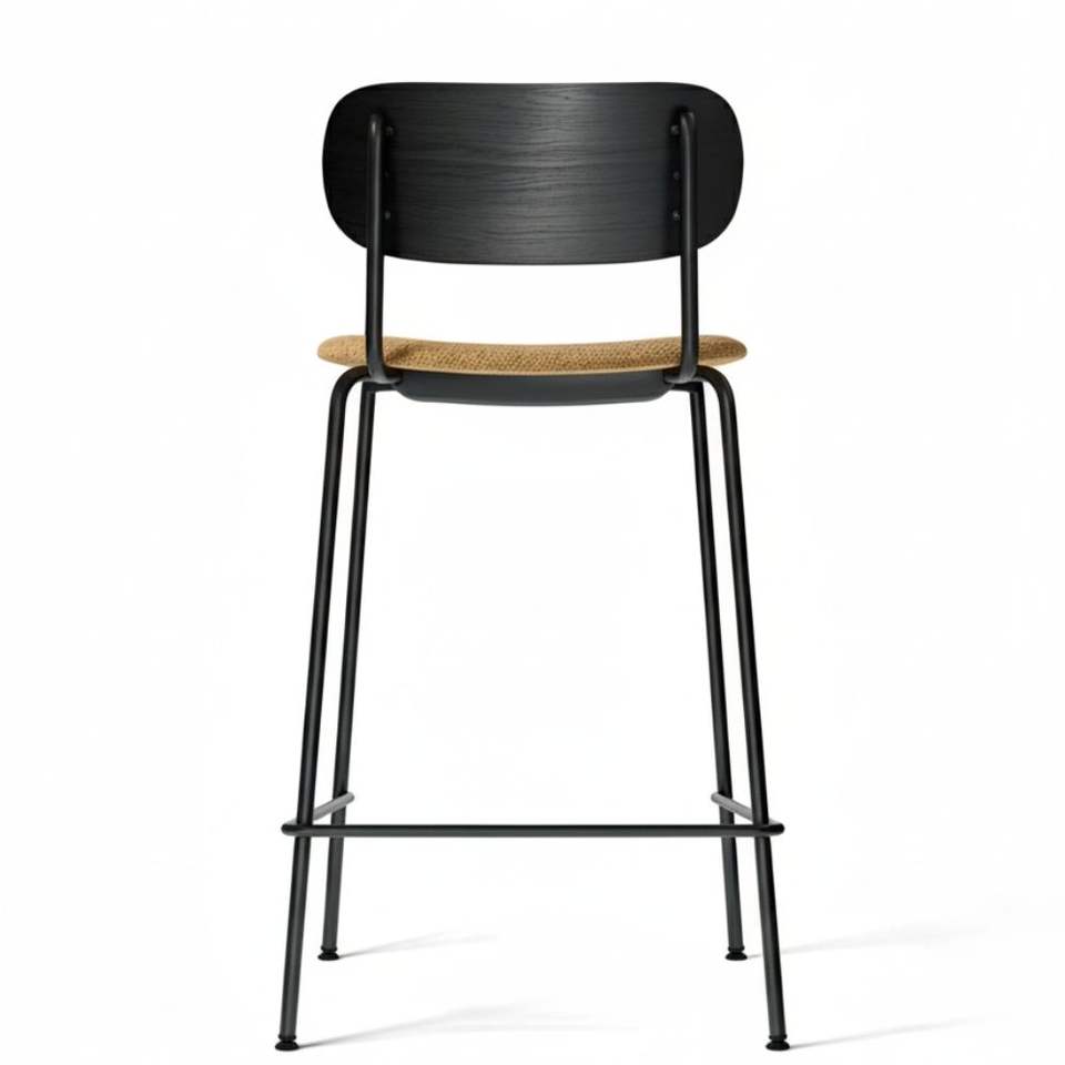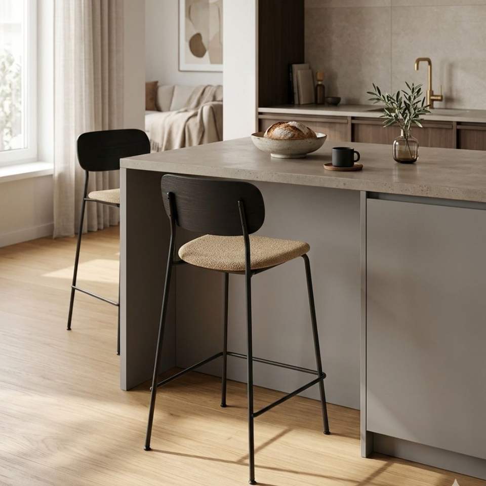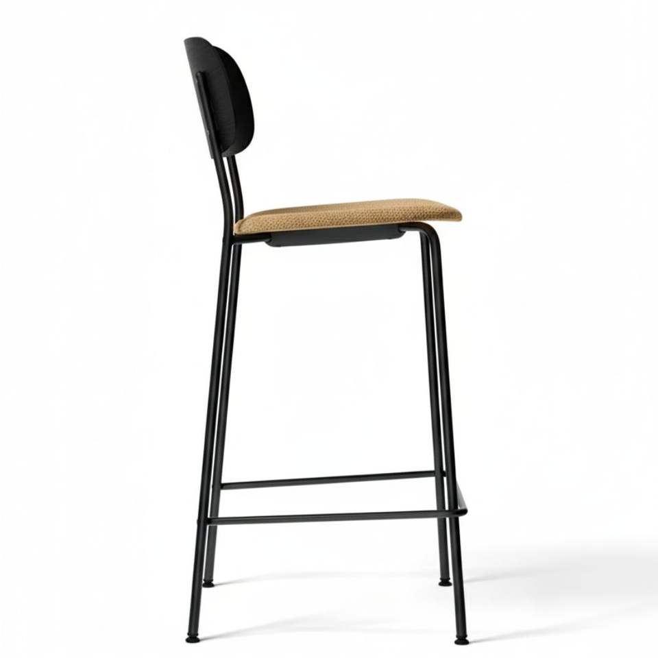 Taburete de Bar Moderno con Altura de Mostrador, Tapizado en Tela, Respaldo de Madera Enchapada y Estructura Metálica para Bar, Restaurante y Salón
