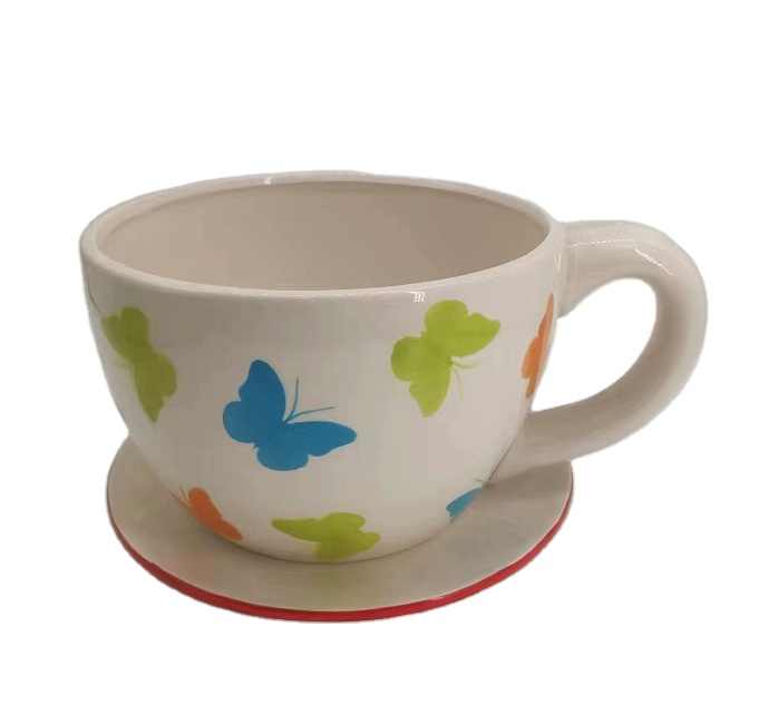 Maceta de cerámica creativa moderna, plato para taza de café, maceta para flores, maceta suculenta, contenedor de cerámica para plantas de jardín