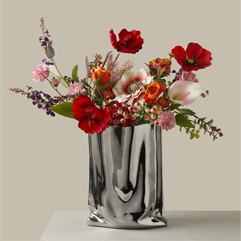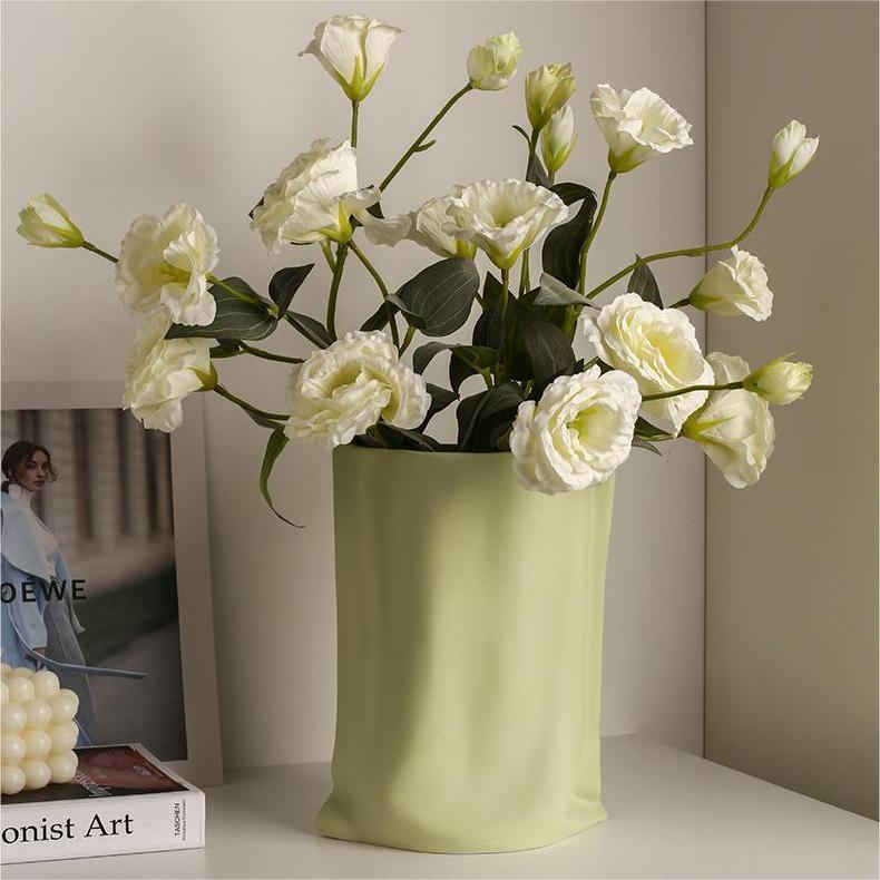Jarrón con forma de bolsa de papel Kraft creativo y moderno, jarrones de cerámica de estilo Crema para el hogar, sala de estar, porche, decoración, florero de mesa