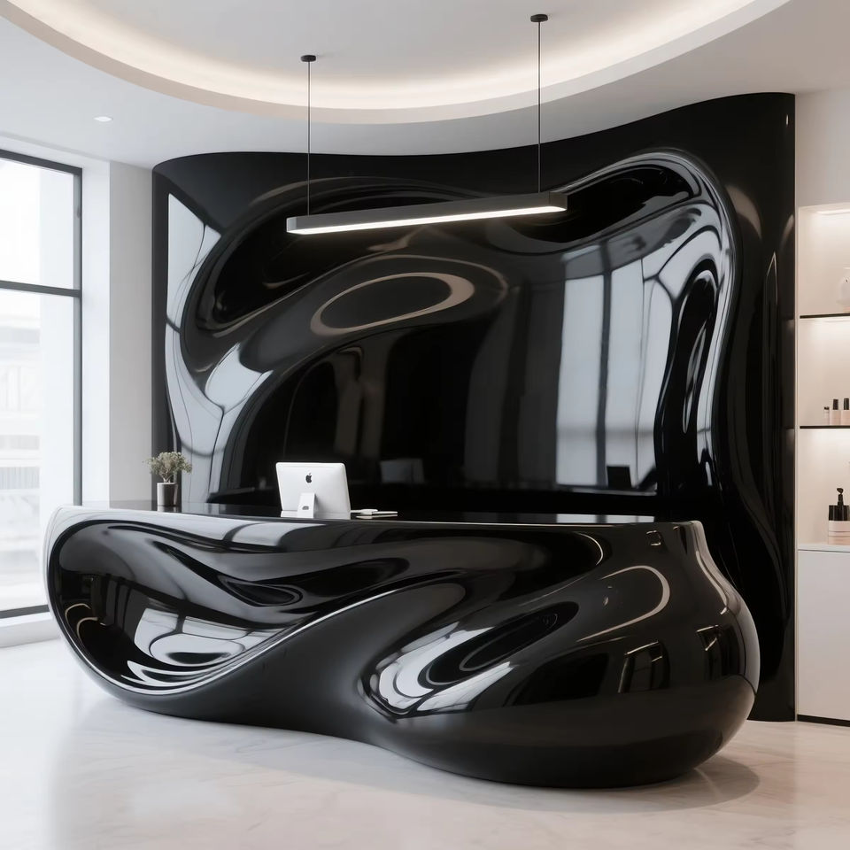 Mostrador de Recepción Negro Moderno Impreso en 3D con Geometría Compleja para Muebles de Vestíbulo de Lujo