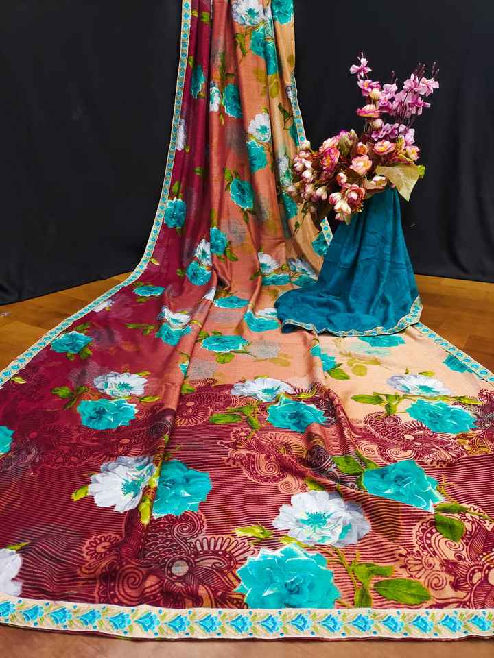 LeBeLe - Sari de Seda con Estampado Digital de Diseño Moderno y Personalizado, de la Mejor Calidad, para Mujer, con Protección Solar, para Bodas, Festivales y Fiestas