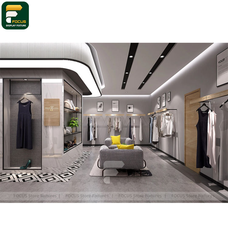Moderno Exhibidor de Ropa Personalizado para Tienda, Mueble de Moda, Estante de Pared, Mostrador de Recepción