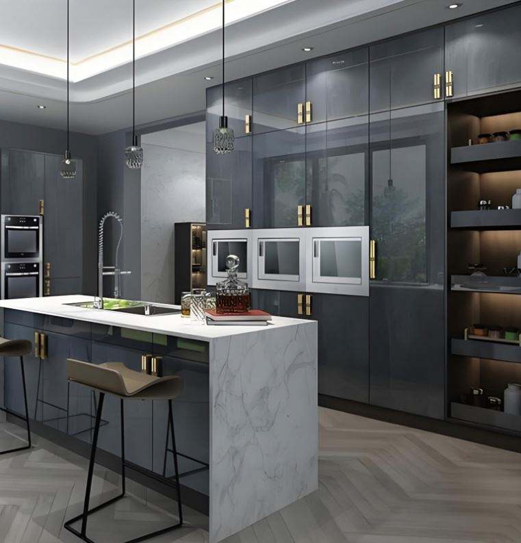 Gabinetes de Cocina Modulares de Madera Empotrados Modernos, Diseño de Pared para Villas, Precio Económico, Venta al Por Mayor