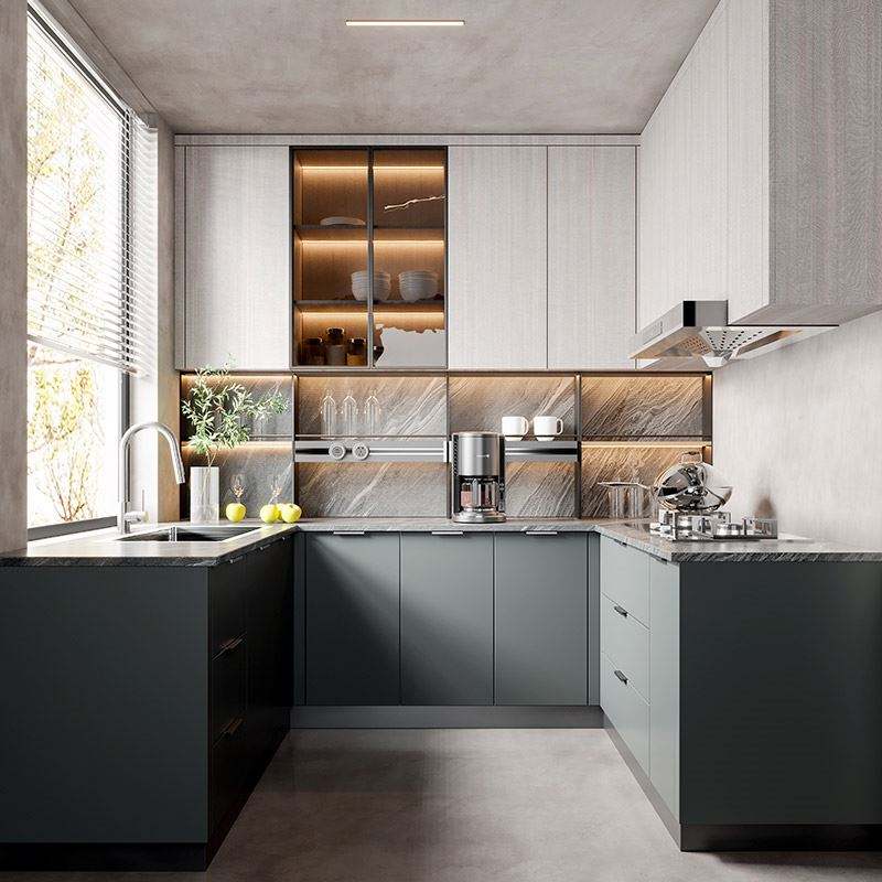 Juego de Muebles de Cocina Modernos y Personalizados, Soluciones de Esquina, Despensa Abierta, Mejora Completa del Hogar - Bisagras de Vidrio y Mármol