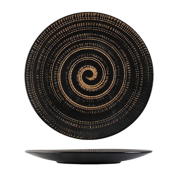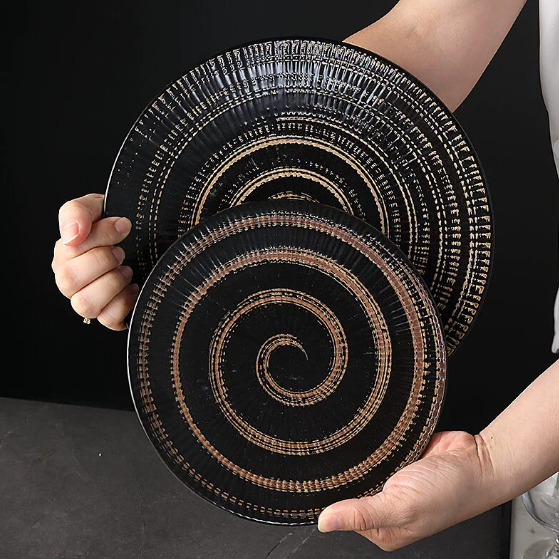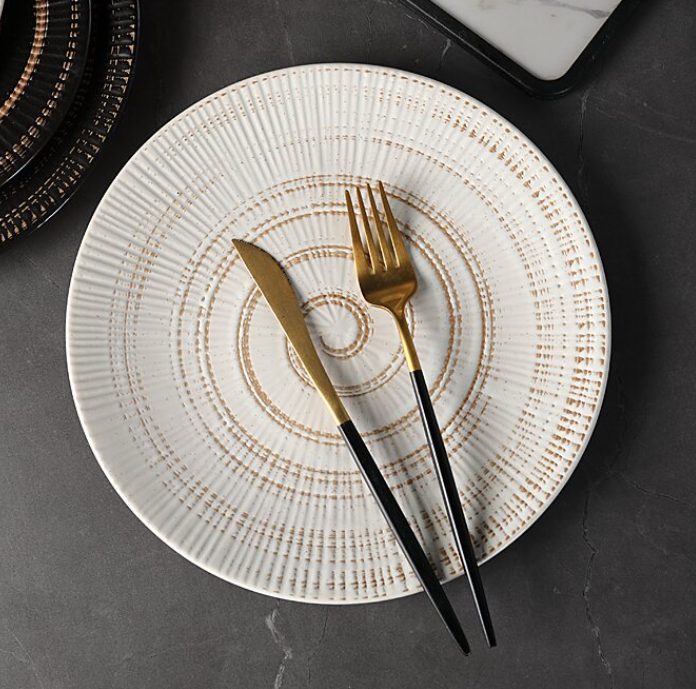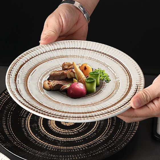 Plato de Cerámica Moderno Hecho a Medida, con Rayas Japonesas, Diseño Creativo en Relieve, Pintado a Mano, Ecológico, Apto para Lavavajillas y Microondas