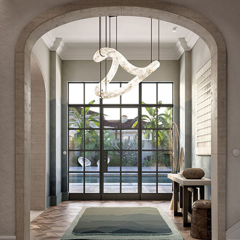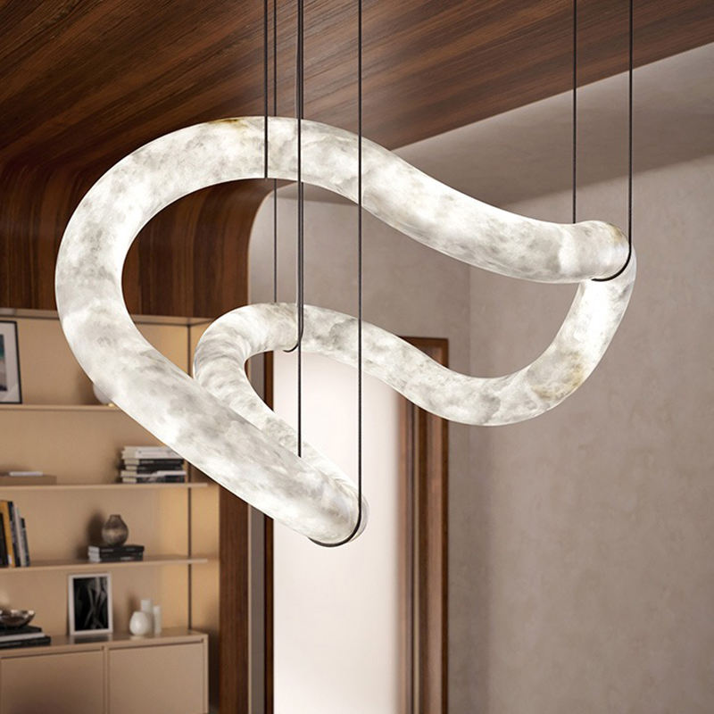 Lámpara Colgante Moderna de Alabastro Natural con Forma Personalizada, Lámpara de Araña LED de Piedra de Mármol de Lujo para Decoración de Comedor de Hotel o Villa
