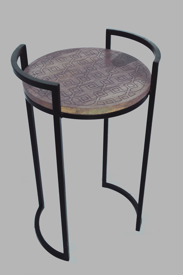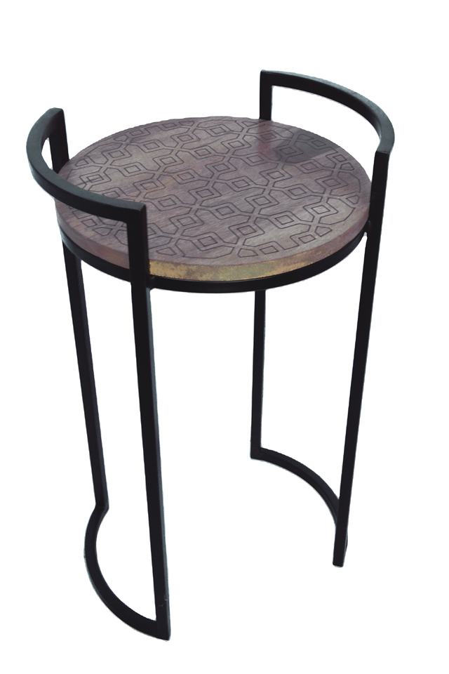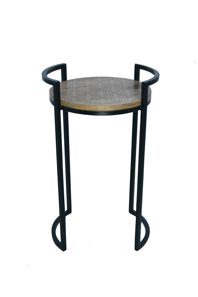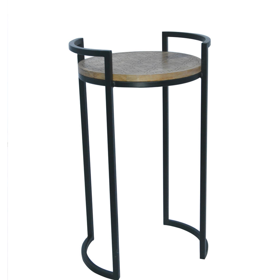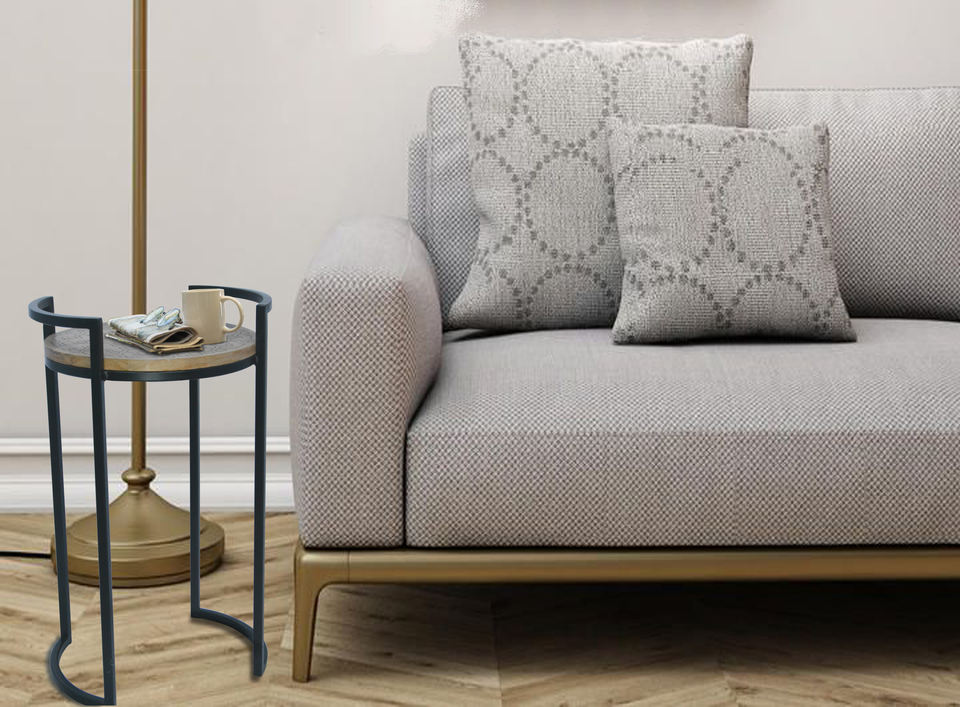 Mesa auxiliar para sala de estar de diseño nórdico de tamaño personalizado moderno, tapa redonda pequeña de madera y marco de metal con asa, mesa auxiliar de café