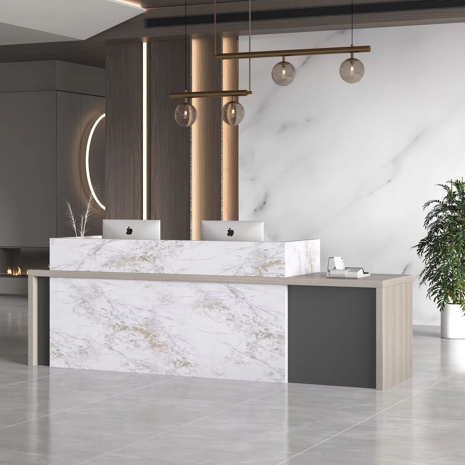 Mostrador de Recepción de Madera Moderno y Personalizado, Muebles de Oficina de Alta Gama al por Mayor para Hoteles, Supermercados, Hospitales y Gimnasios