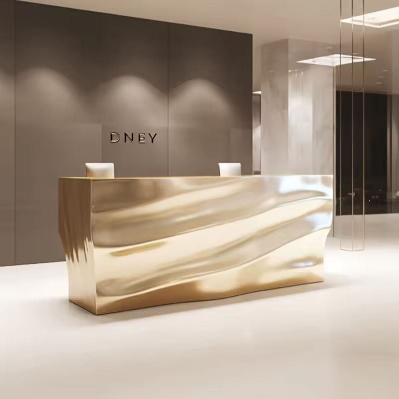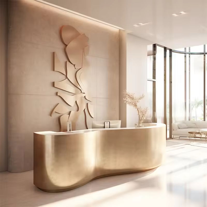 Mostrador de Recepción Extensible Moderno y Personalizado, Diseño de Forma Inusual, Muebles Comerciales de Plástico PETG para Oficinas, Hoteles y Centros Comerciales