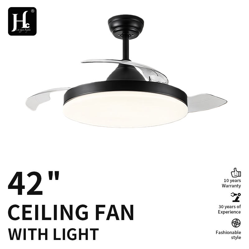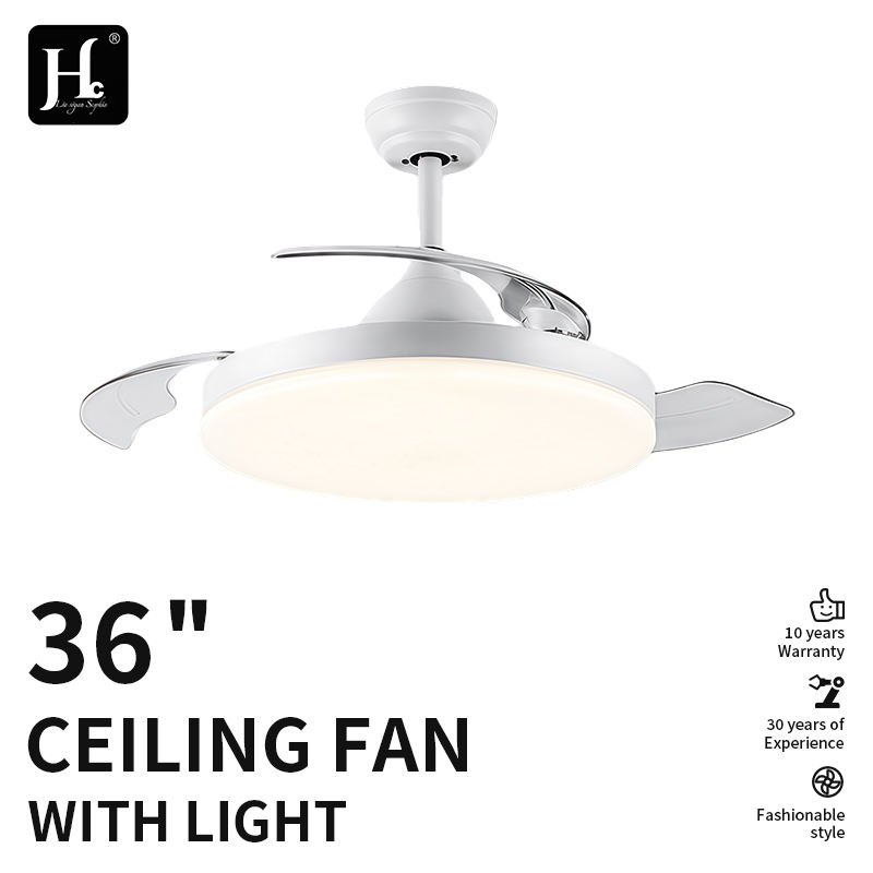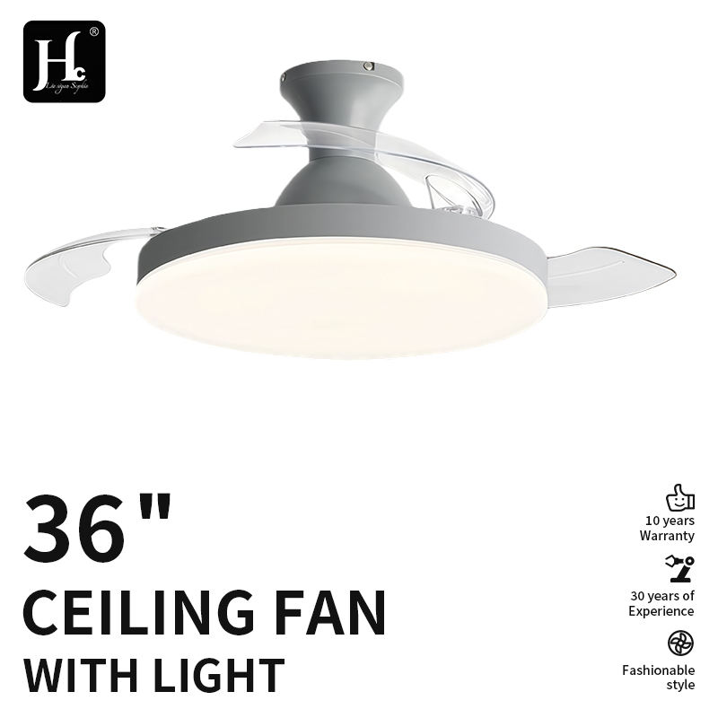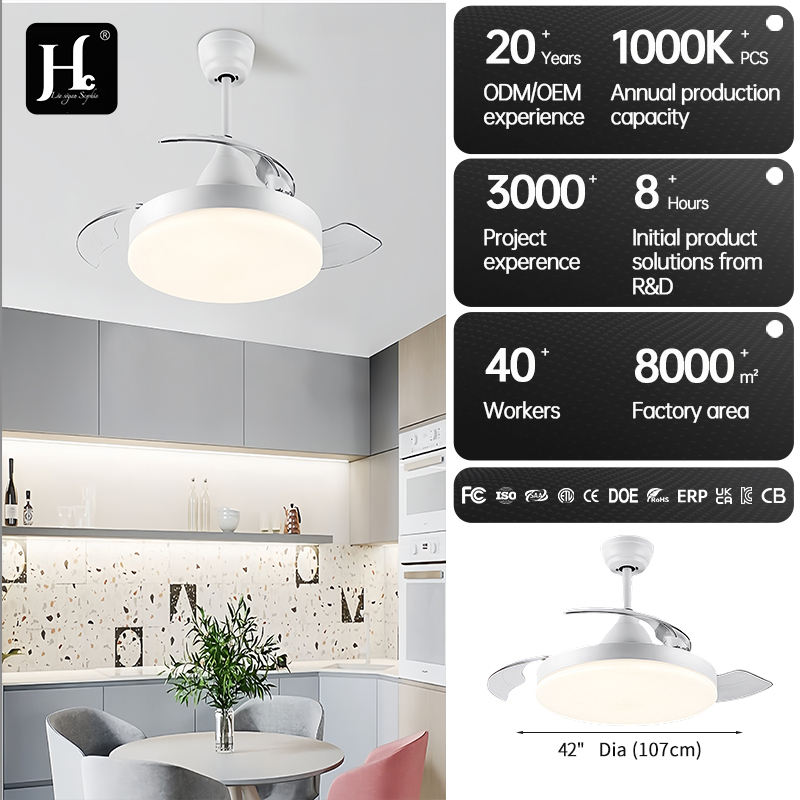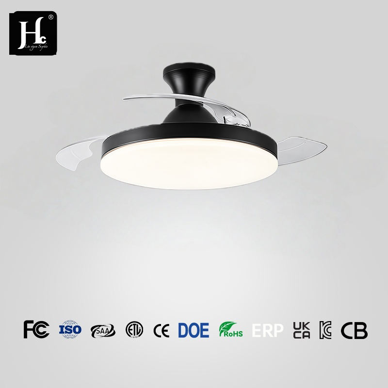 Ventilador de Techo Moderno con Motor de CC Retráctil y Luz LED, Diseño Invisible y Control Remoto Regulable para Sala de Estar