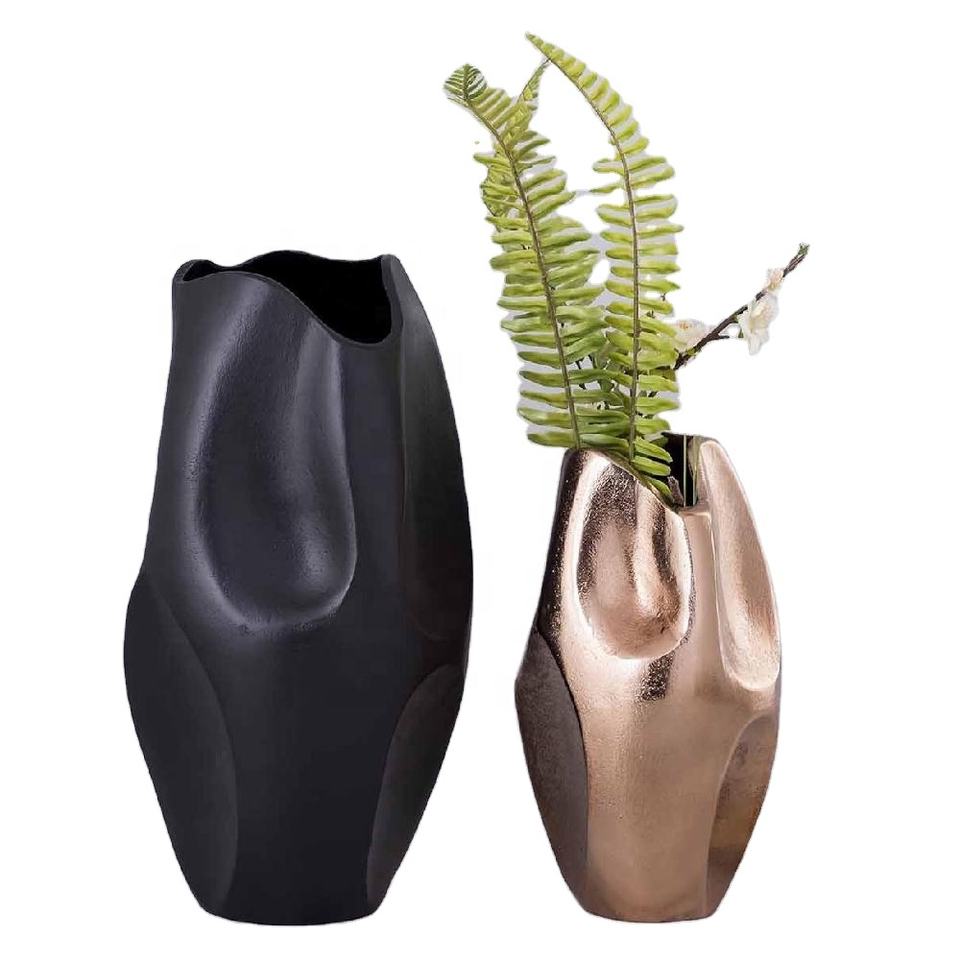 Jarrón abstracto decorativo moderno, florero de mesa fundido en bruto, latón antiguo y acabado negro, jarrón de Metal de aluminio para decoración del hogar