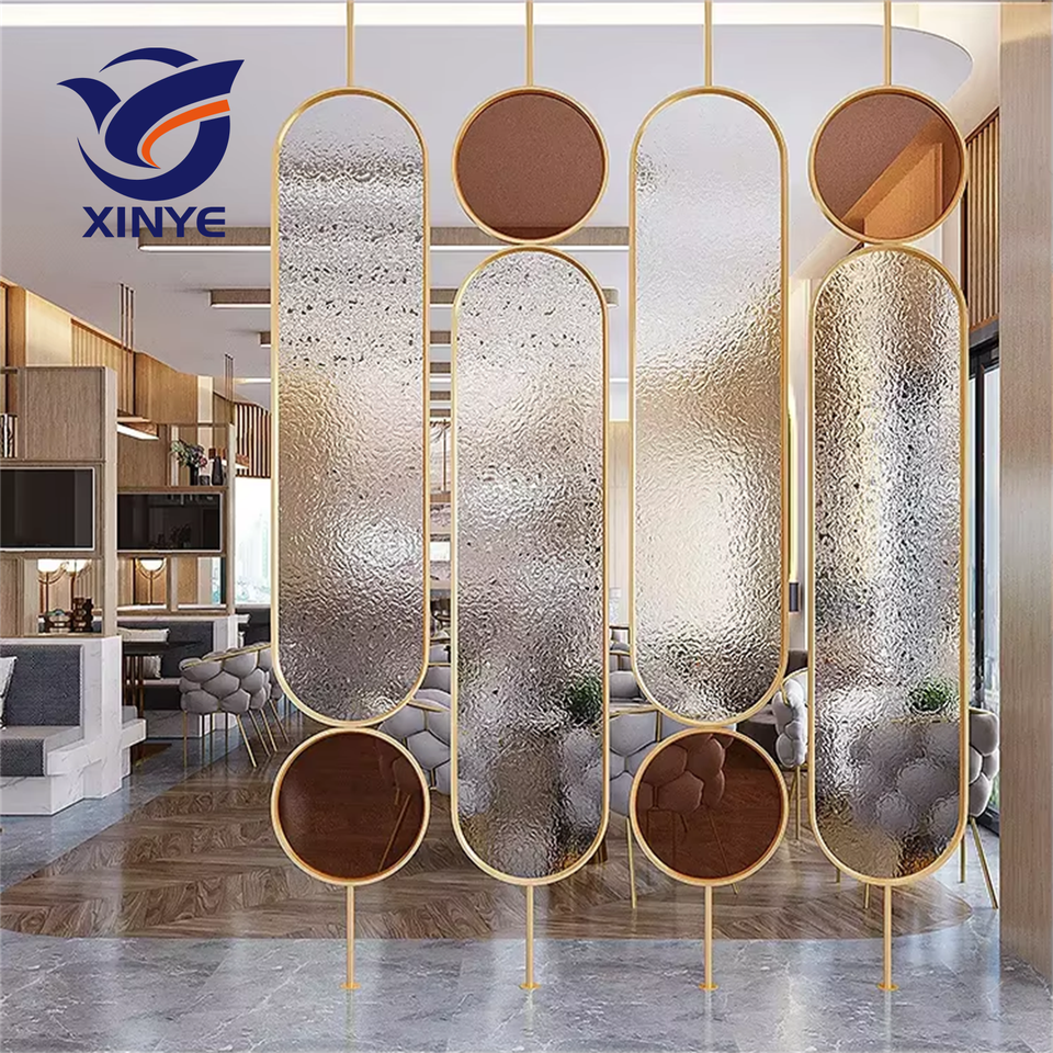 Divisor de Espacios Moderno, Decorativo, Plegable, Transparente, de Metal, Forma Ovalada, Panel de Acero Inoxidable con Espejo de Vidrio para Hotel
