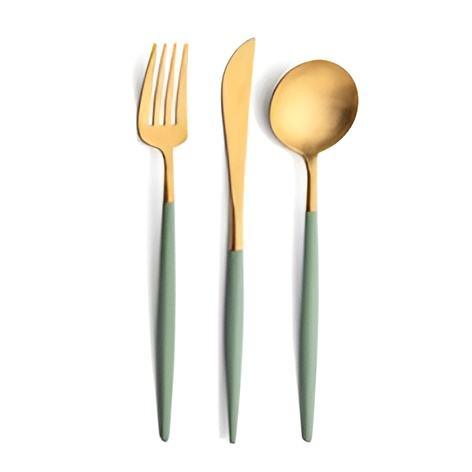 Palabra clave:Juego de cubiertos de 3 piezas de latón y acero inoxidable