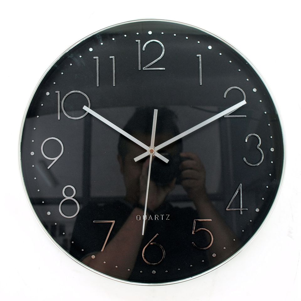 Reloj de Pared Moderno Decorativo de Plástico con Marco Plateado, Elegancia Creativa, Compra en Línea, Redondo de 12 Pulgadas