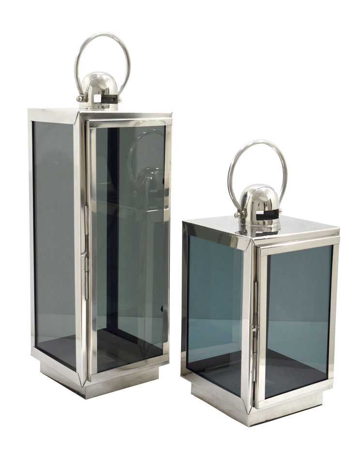 Juego de 2 Faroles Decorativos Modernos de Acero y Vidrio con Acabado Niquelado para Mesa de Boda y Festivales, Personalizables