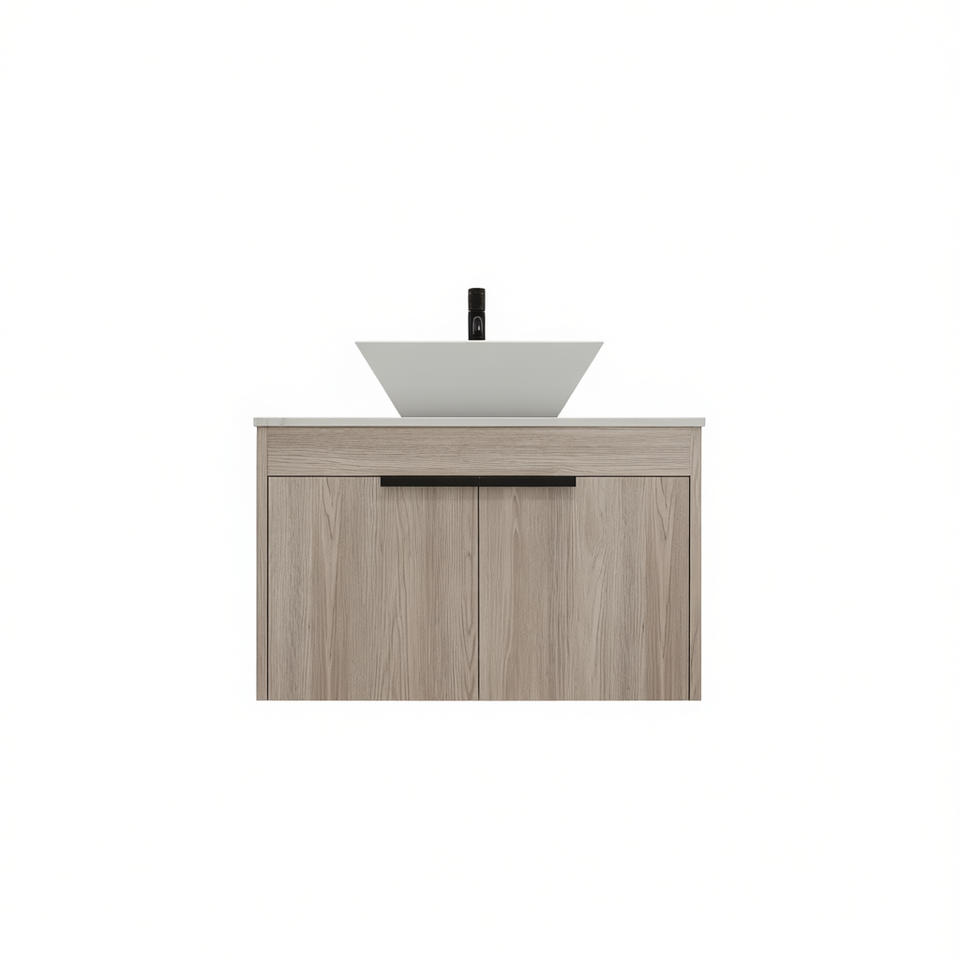 Mueble de Baño Moderno de 30 Pulgadas en Roble Blanco, Montado en la Pared, con Puerta de Cierre Suave, Lavabo de Cerámica, Modelo D0100HPGCZA