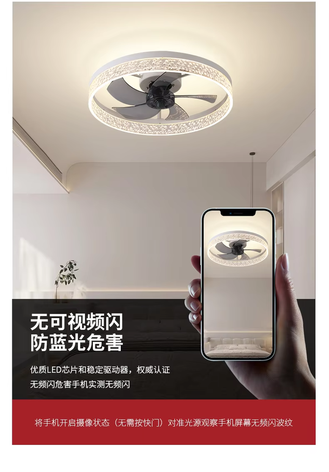 Ventilador de Techo Moderno de Bajo Perfil con 6 Velocidades, LED, Silencioso, Refrigeración por Aire, Control Remoto Inteligente y Aplicación, 5 Aspas, Cuerpo de Metal, para el Hogar