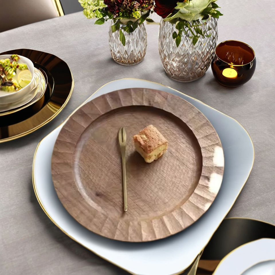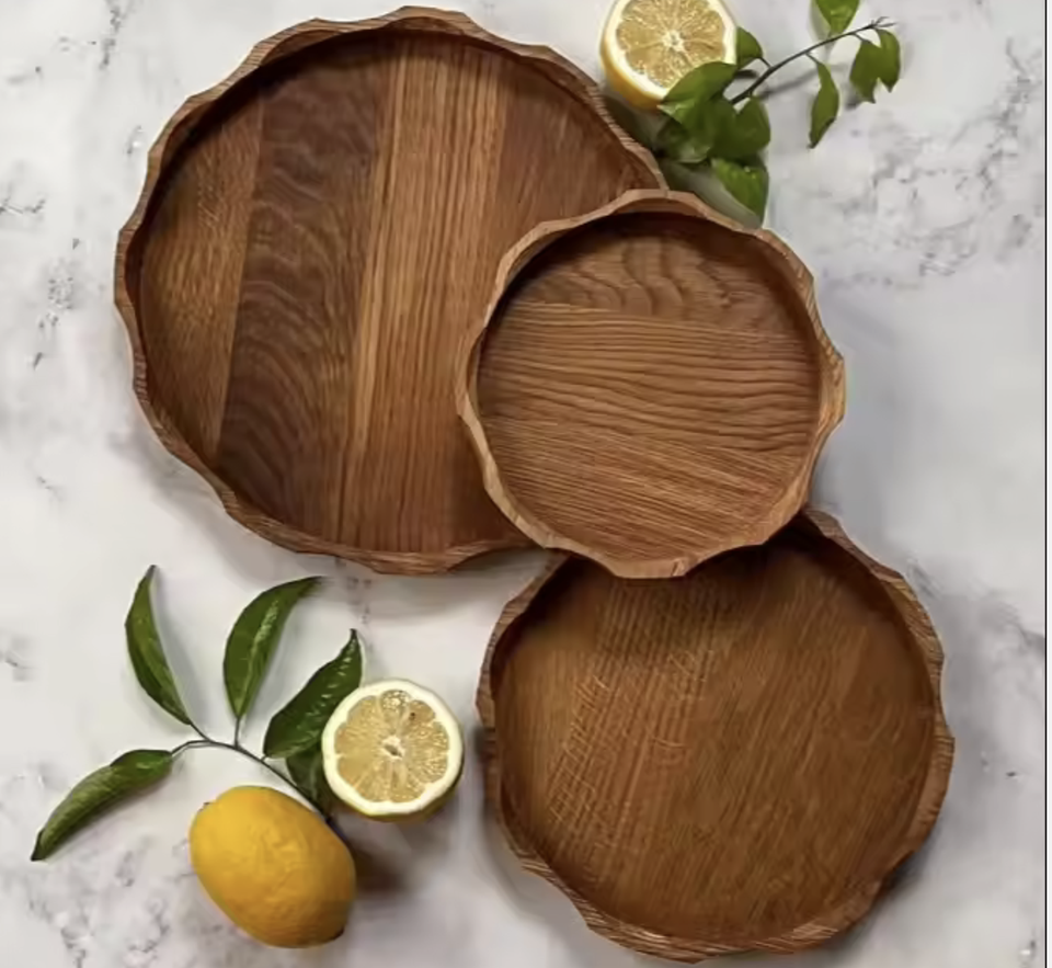 Plato de madera de acacia de diseño moderno, plato de cena desechable, juego de platos para hoteles, cocina pulida a mano