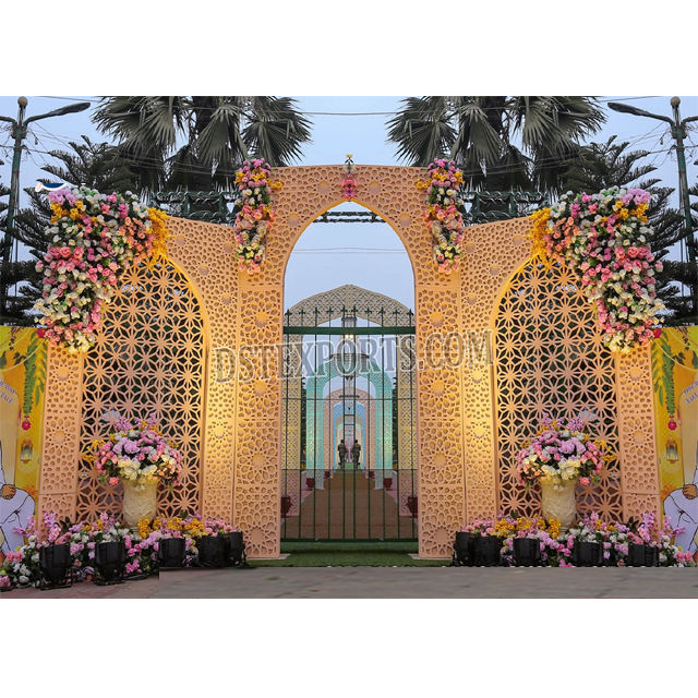 Marcos de puerta de entrada de banquete de diseño moderno paneles cortados con láser para decoración de entrada de banquete Puerta de bienvenida de boda con Mehrabs cortado con láser