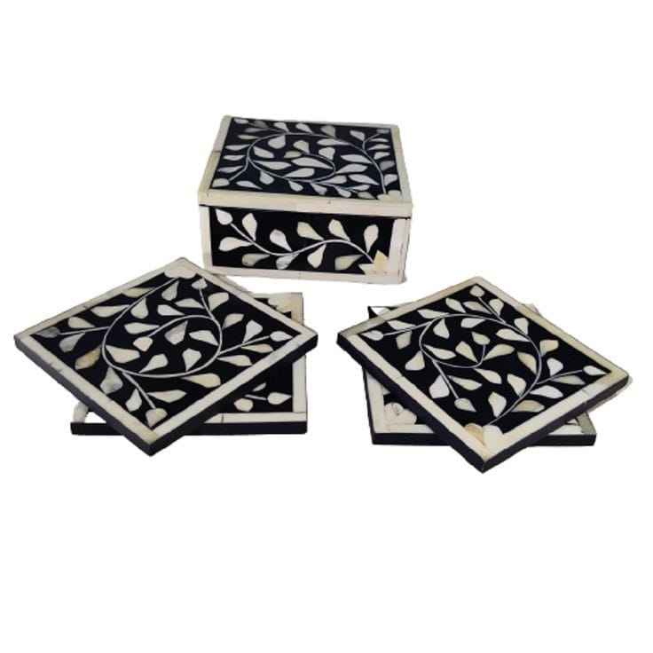 Posavasos de té con incrustaciones de hueso de diseño moderno para mesa de servicio de té importado de la India Artículo promocional Premium