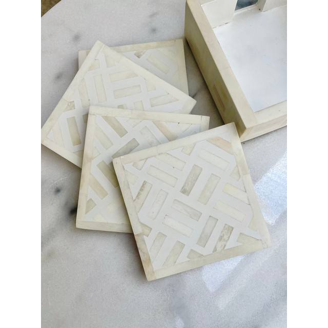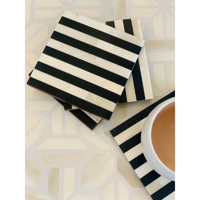 Posavasos con incrustaciones de hueso de diseño moderno con hoja de color blanco y negro para utensilios de cocina y mesa decorar alfombrillas y almohadillas con incrustaciones de hueso