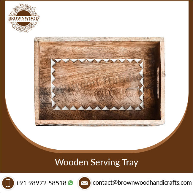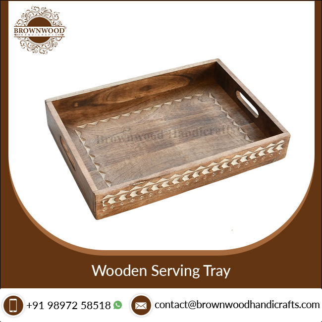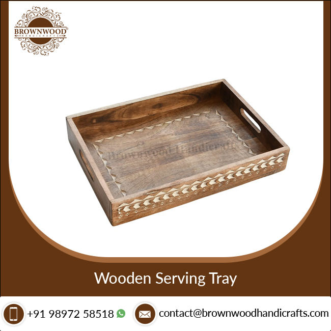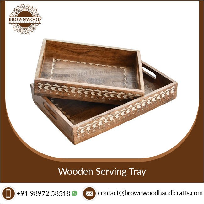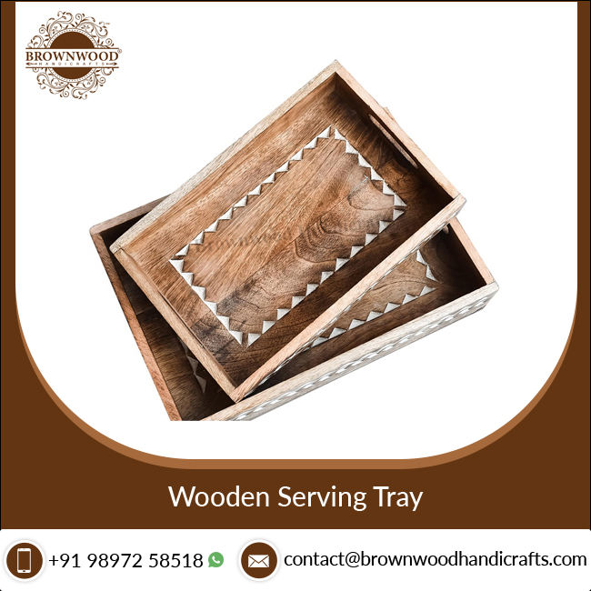 Bandejas de madera tallada a mano para servir comida, Juego de 2 con asas, Color blanco quemado, forma Rectangular, diseño moderno