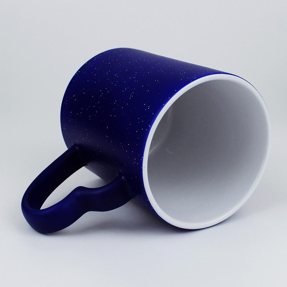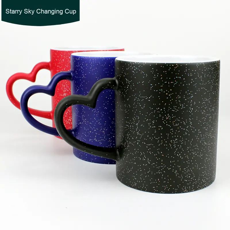 Diseño moderno Cerámica Magic Starlight Taza de transferencia de calor Cielo estrellado Cambio de color Mango de corazón Fabricante Fiestas al por mayor
