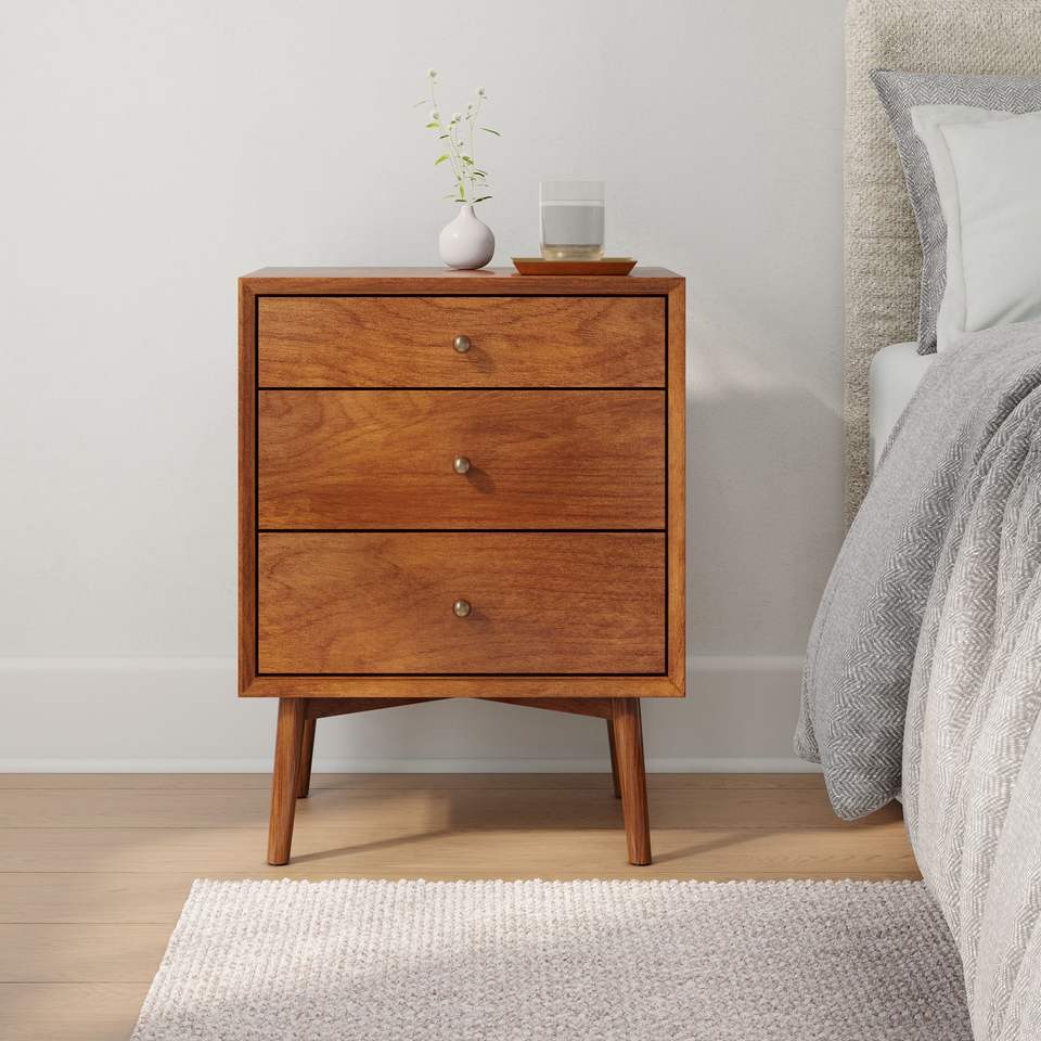 Diseño moderno de madera de cerezo, muebles de dormitorio sólidos puros, mesita de noche pequeña nórdica para el hogar para hoteles, apartamentos, directo de fábrica