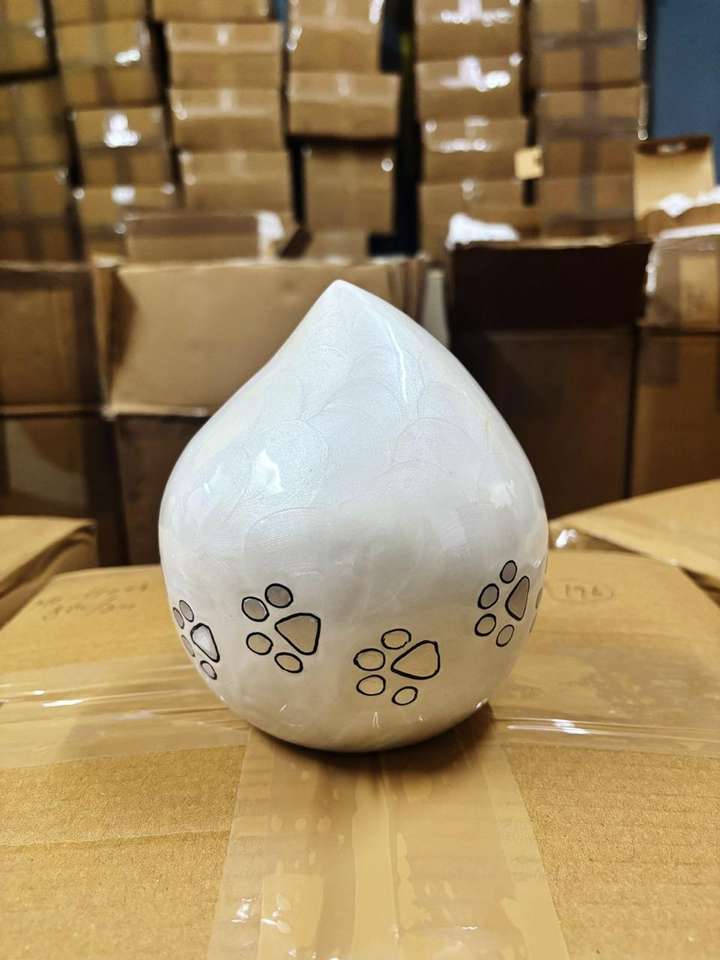 Urna de cremación de Metal con forma de lágrima clásica de diseño moderno para mascotas, precios bajos terminados, urnas para cenizas, pata para mascotas grabada